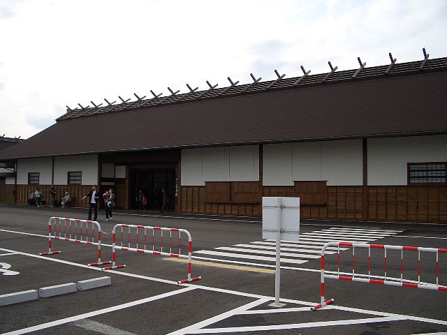 池の四周で屋根のあるのは1辺だけです。